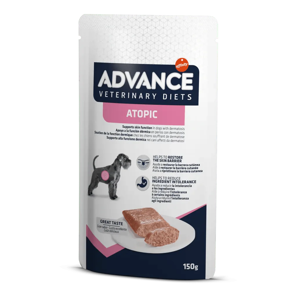 ADVANCE VETERINARY DIETS ATOPIC è un alimento dietetico completo e bilanciato, formulato per la cura della pelle in caso di dermatite, nonché per ridurre le intolleranze agli ingredienti e ai nutrienti.