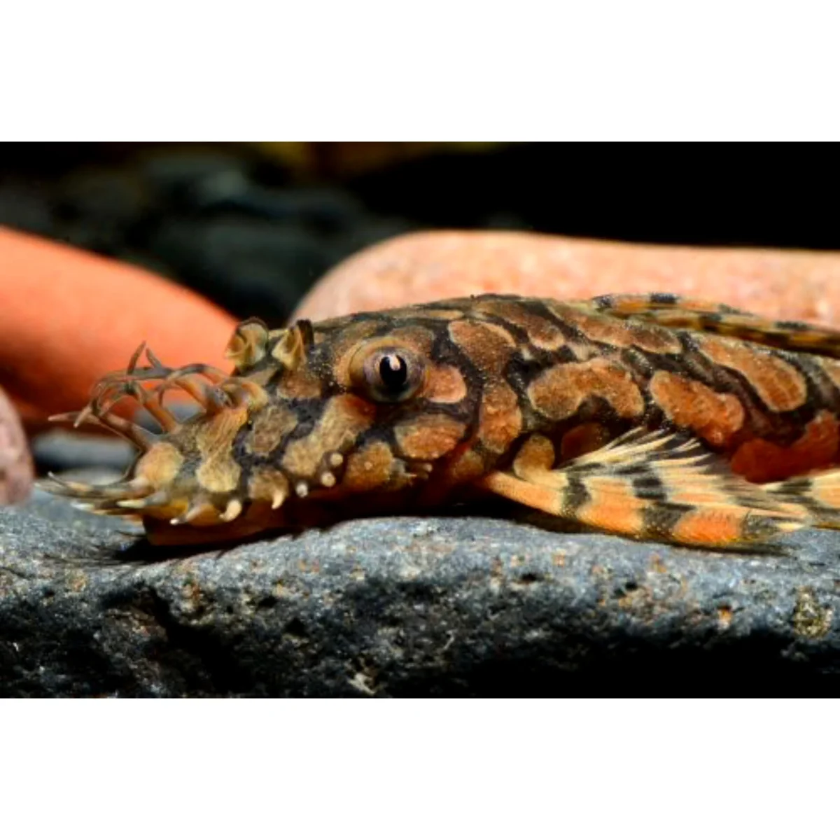 Pesce di acqua dolce. Famiglia: Loricariidae.Distribuzione e Habitat: Amazzonia. Temperatura 25/27 gradi. 4-10 GH 6,8-7,2 PH. Alimentazione: onnivoro.
