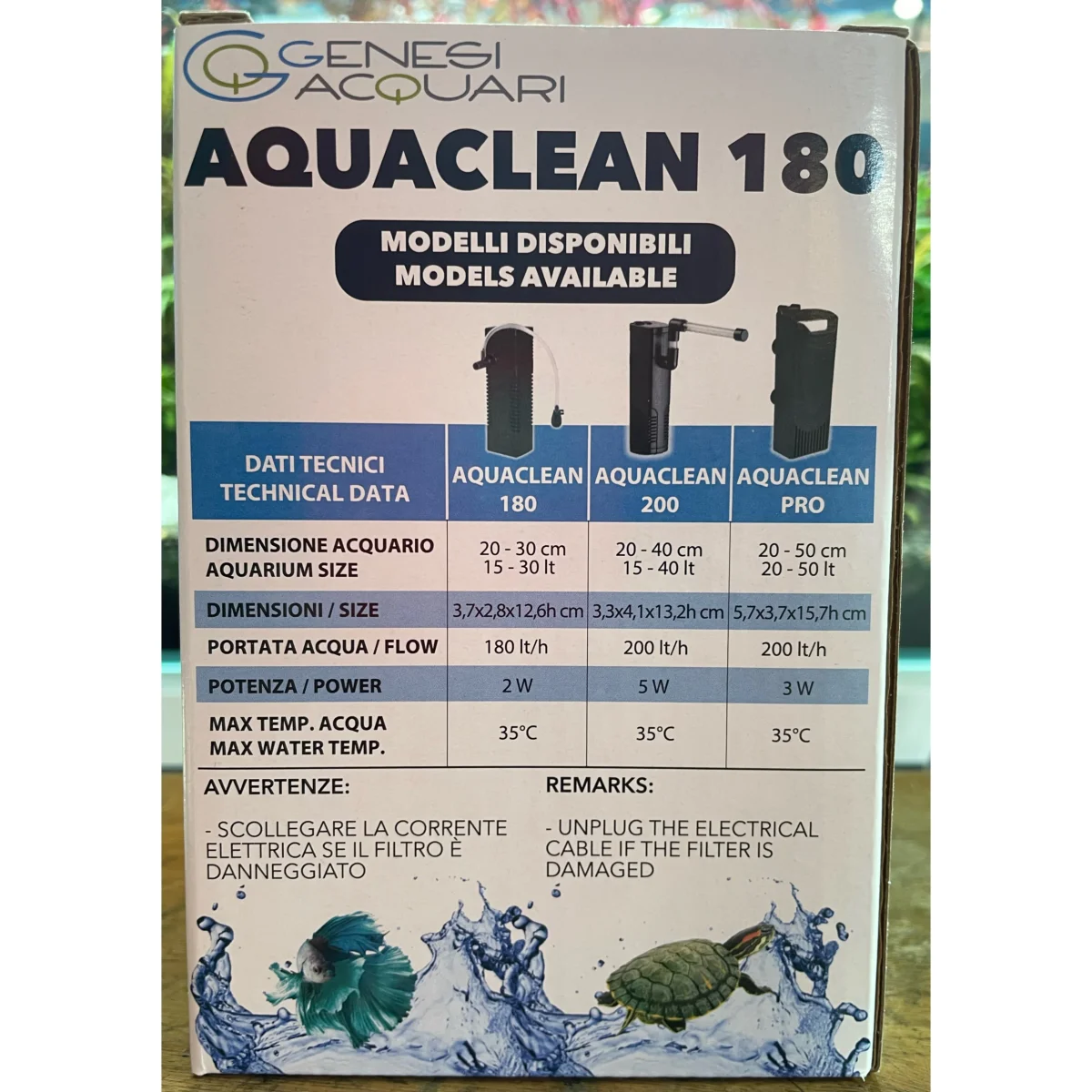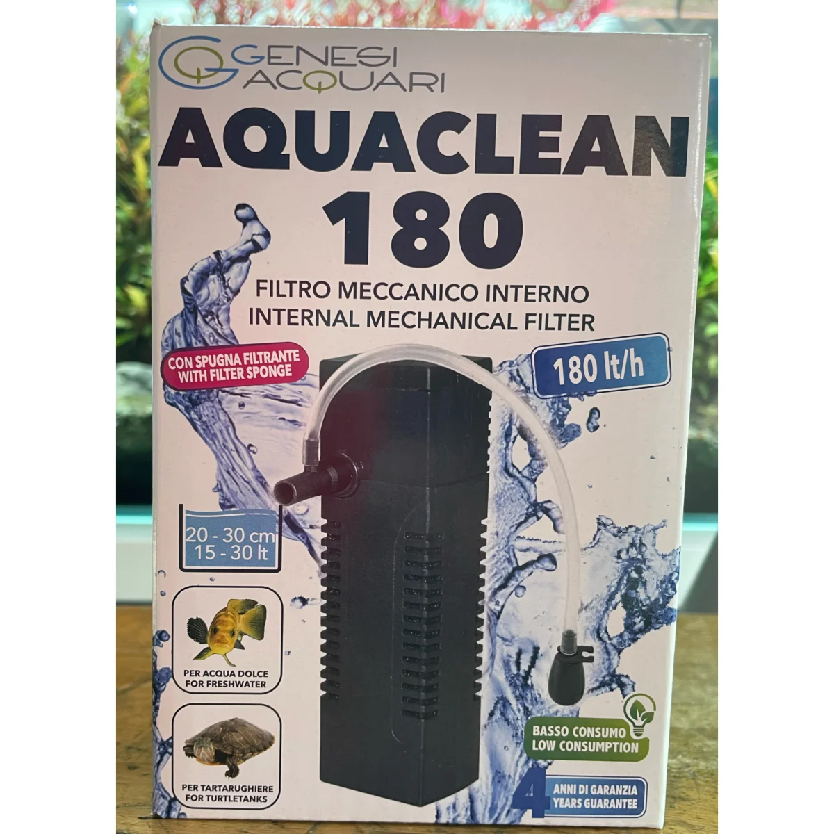 Filtro interno a cartuccia per piccoli acquari e tartarughiere per acquari da 15-30 Lt portata d’acqua 180 Lt/h potenza 2W