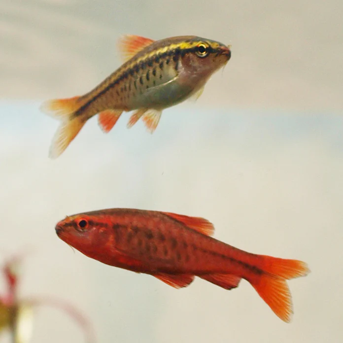 Pesce Acqua dolce. Famiglia:Cyprinidae.Distribuzione habitat: Asia. L’acqua deve essere nell’intervallo pH 6/8. gH 3-15 con una temperatura di circa 18-25°C. Alimentazione: onnivoro. NB: acquisto minimo 3 pezzi.