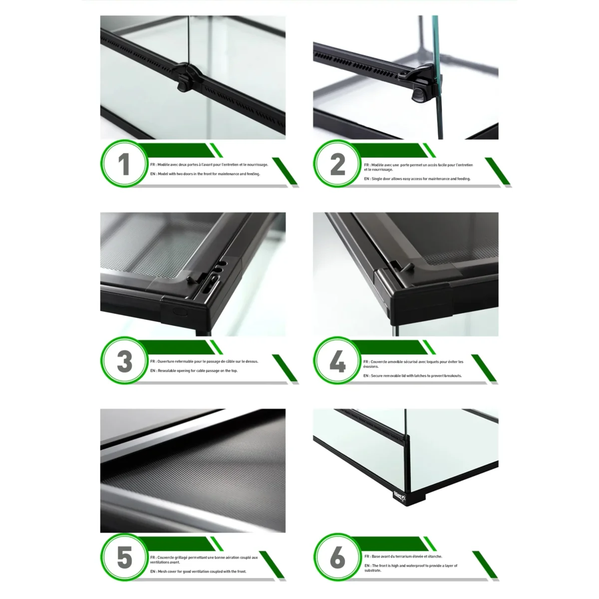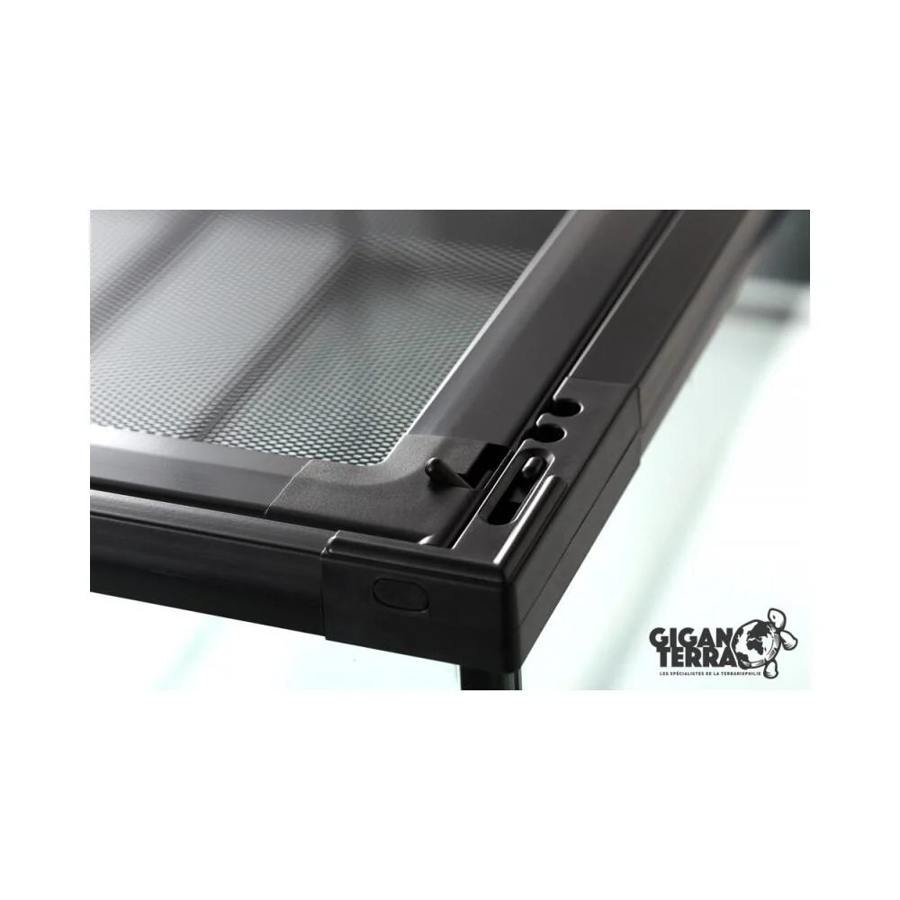 I terrari in vetro Giganterra sono progettati per conservare e mostrare i tuoi rettili e anfibi ripristinando il loro ambiente naturale. Disponibili in varie dimensioni, permettono di avere uno spesso strato di supporto sul fondo. Due ampi sportelli con chiusura garantiscono un facile accesso per la pulizia e l’alimentazione. Griglie di aerazione estraibili ed eventuale passaggio cavi sul piano. Dotato anche di un’apertura sulle griglie di aerazione che permette di fissare il tubo flessibile del nostro nebulizzatore GigaFogg.