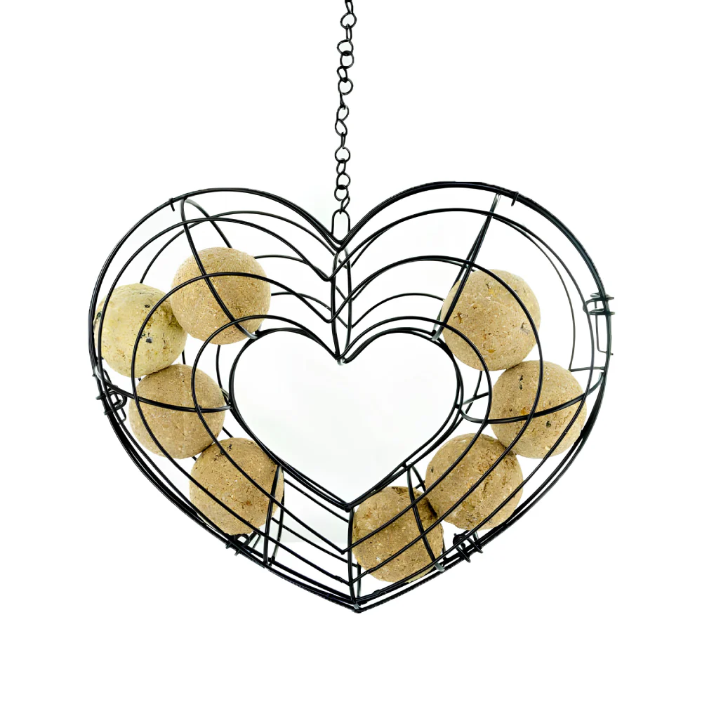 Porta palle di grasso (non incluse) in metallo con un design romantico a forma di cuore, perfetto per aggiungere un tocco di stile al tuo giardino o terrazzo. Progettato per consentire agli uccellini di aggrapparsi facilmente mentre si nutrono.