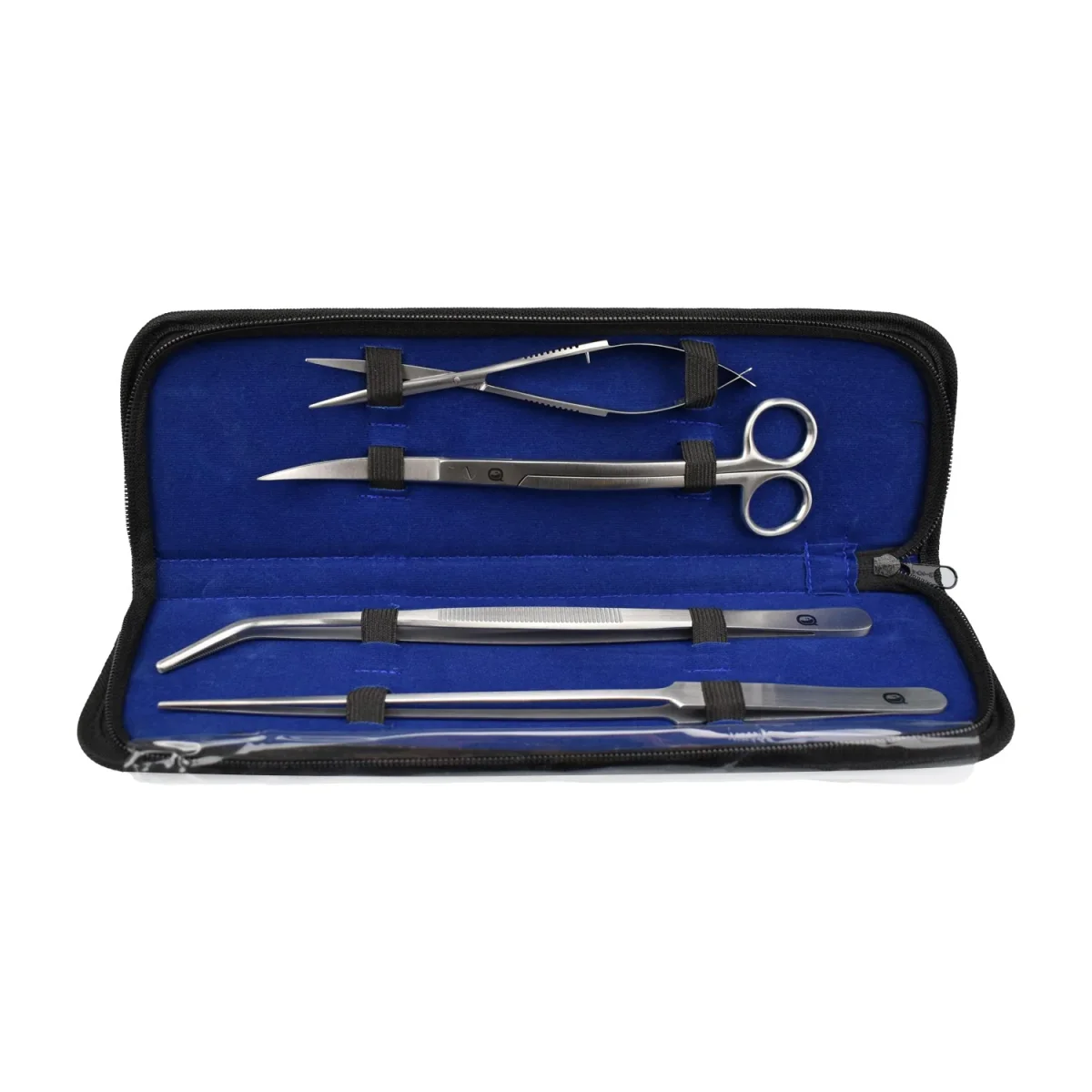 È composto da una forbicina piccola che vi consente di effettuare le potature in spazi ristretti e angusti, una forbice ricurva idonea per la potatura del prato in vasca, una pinza a punta dritta che vi aiuta ad eliminare corpi indesiderati e piantare nuove piante nel substrato, una pinza a punta ricurva che vi aiuta a piantare nuove piante nel substrato anche nei punti più stretti e nascosti. Il tutto custodito in un elegante astuccio contenitore nero targato Aqpet.